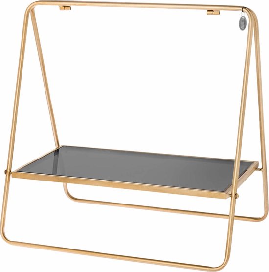 Deze minimalistische Riverdale etagère is een sieraad in huis. Hij heeft één verdieping, maar is ook te koop in een groter formaat met 2 plateaus. Het plateau bestaat uit een smoked glasplaat. Hij is 49,5 cm hoog.