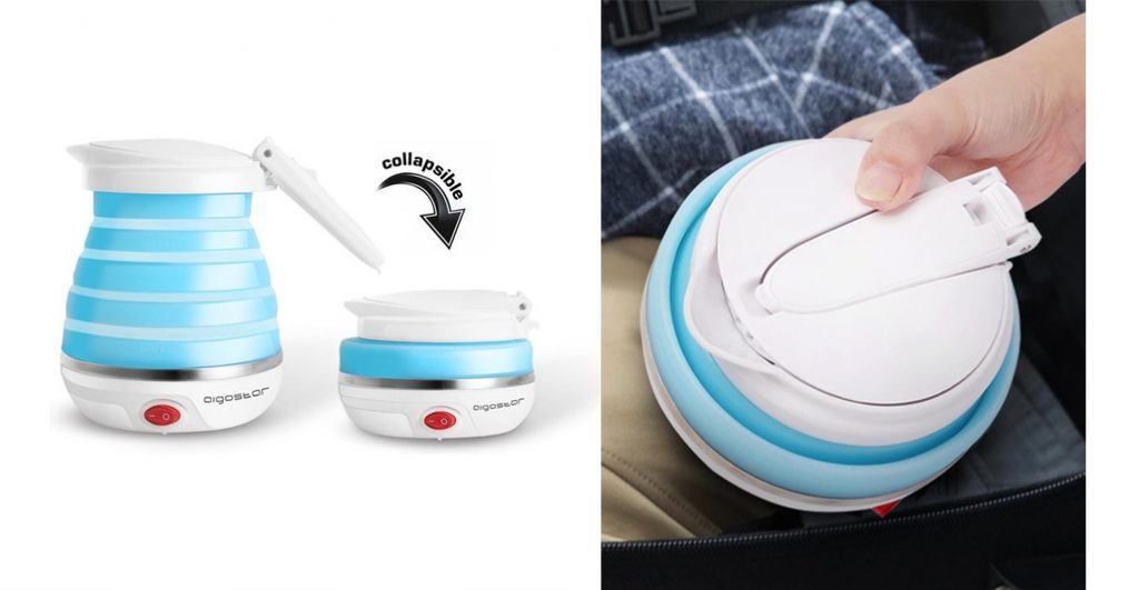 Als je op zoek bent naar een reiswaterkoker die je klein kunt opvouwen is deze Aigostar geschikt. Doordat je hem kunt opvouwen beperk je de ruimte die hij in beslag neemt. Daarnaast weegt hij slechts 700 gram en past er 600 ml water in.